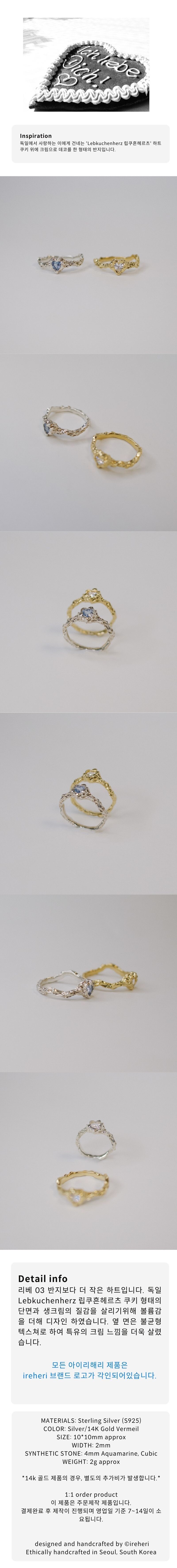 리베 03 반지보다 더 작은 하트입니다. 독일 Lebkuchenherz 립쿠흔헤르츠 쿠키 형태의 단면과 생크림의 질감을 살리기위해 볼륨감을 더해 디자인 하였습니다. 옆 면은 불균형 텍스쳐로 하여 특유의 크림 느낌을 더욱 살렸습니다.